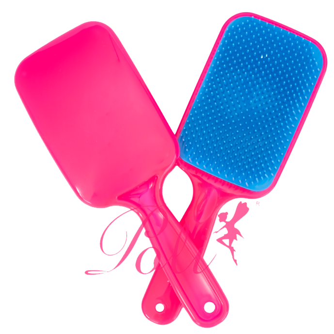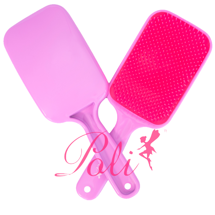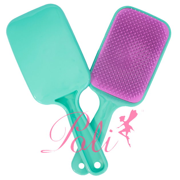 Escova mágica raquete flex com cerdas flexíveis de dupla altura. Desembaraça todos os tipos de cabelo sem puxar ou quebrar fios. Suave e eficaz.
