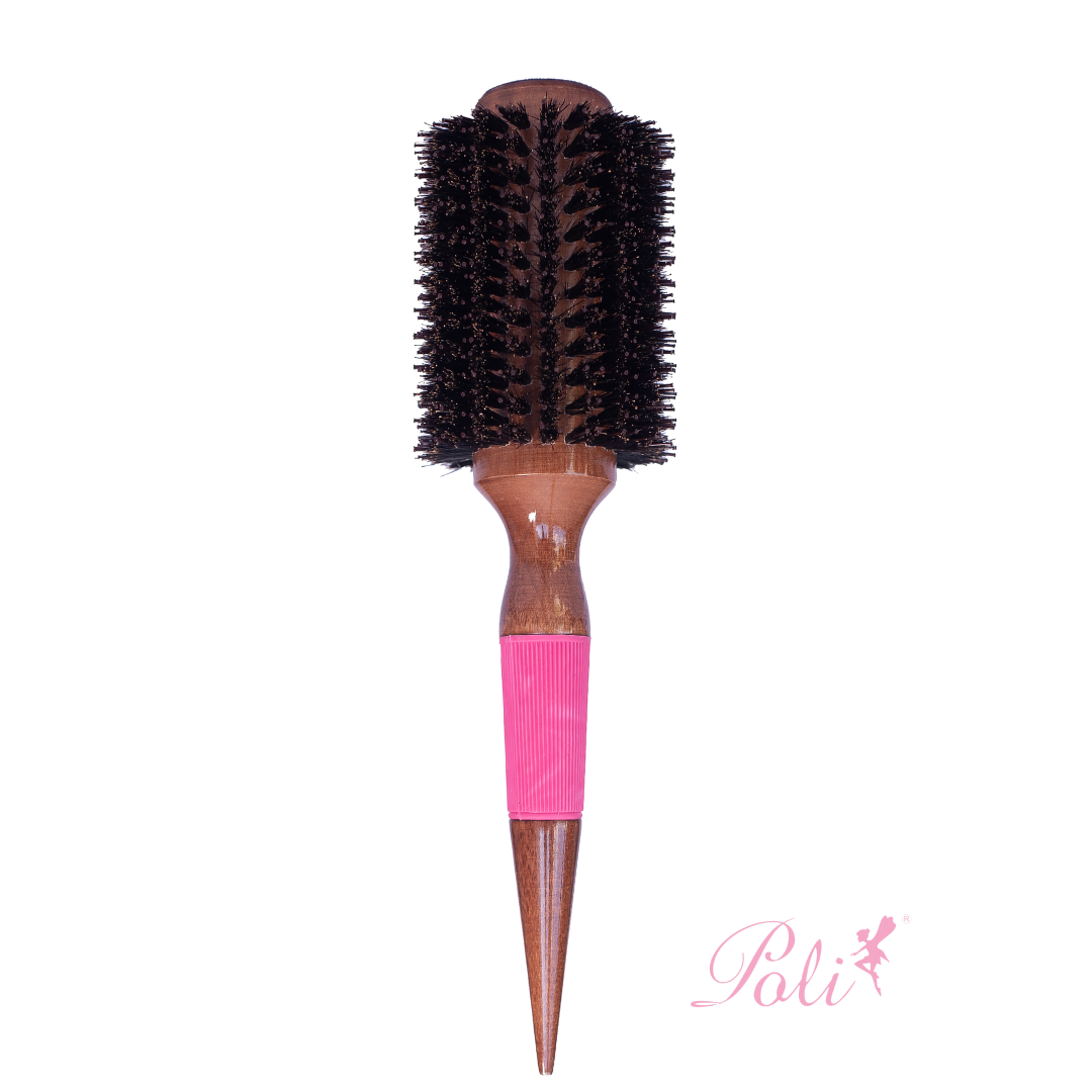 As escovas de madeira possuem o cabo anatômico e cerdas mistas (Nylon e Javali) que facilita o manuseio. As cerdas mistas atuam em conjunto enquanto uma alisa os fios, a outra facilita a penetração da escova nas mechas. São ideais para alisamento e modelagem dos cabelos.