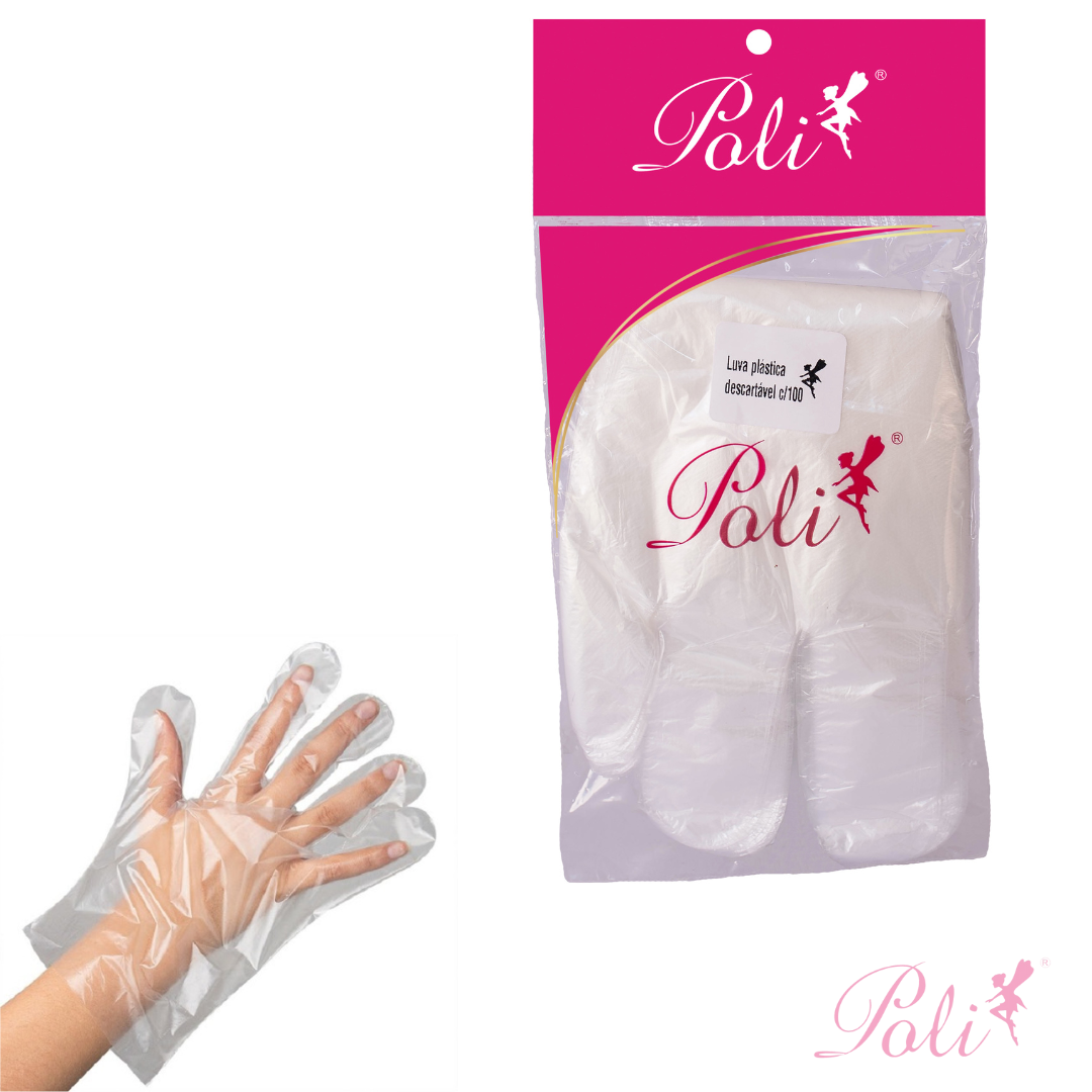 Luva descartável plástica – 100 unidades. Proteção para alimentação, limpeza e uso geral. Atóxica, inodora e econômica.