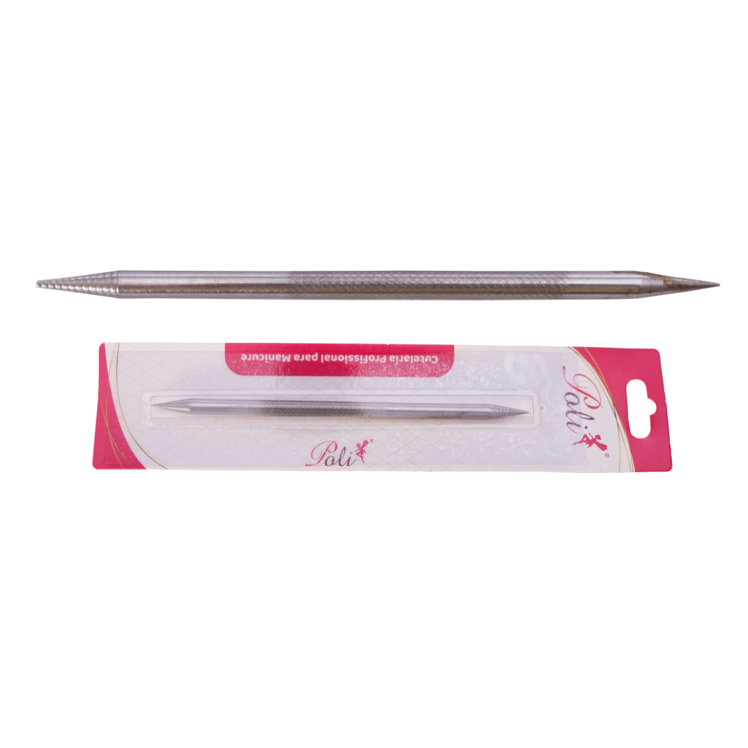 Palito inox 2 pontas, possui dois lados, para empurrar a cutícula, limpar e finalizar as unhas.